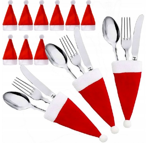- ŚWIĄTECZNE – piękne dekoracyjne pokrowce na sztućce z motywem czapki Mikołaja to wspaniała dekoracja stołu w świątecznym okresie. Pokrowce na sztućce z serii świątecznej sprawią, że Boże Narodzenie będzie jeszcze piękniejsze.
