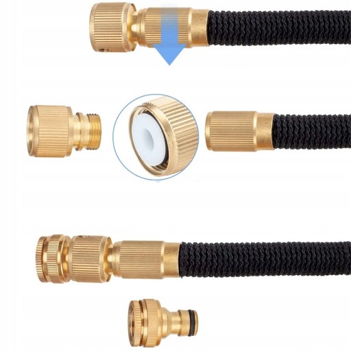 - Rozciągliwość: Wąż automatycznie rozciąga się do 15 metrów pod wpływem wody, a po jej odcięciu powraca do swojego pierwotnego, kompaktowego rozmiaru, co ułatwia przechowywanie.