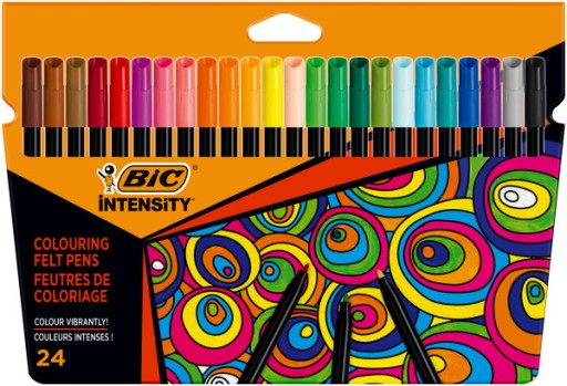 - Flamastry do kolorowania BIC Intensity są dostępne w olśniewającej gamie 24 żywych odcieni dla dorosłych i nie tylko