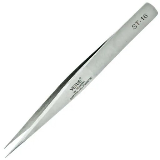 Pinceta Vetus ST-16 to profesjonalny model z prostymi krawędziami roboczymi, bez którego niemal niemożliwe jest pracować w technice przedłużania rzęs. Wykonany z jakościowego metalu, wyposażony w antymagnetyczne pokrycie.