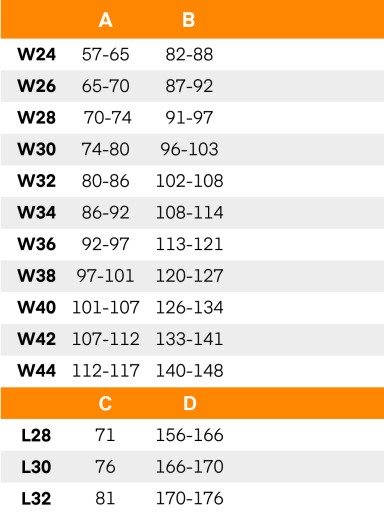 B: Obwód bioder - mierzymy w najpełniejszym miejscu pośladków (obwód bioder, to nie obwód kości biodrowych).