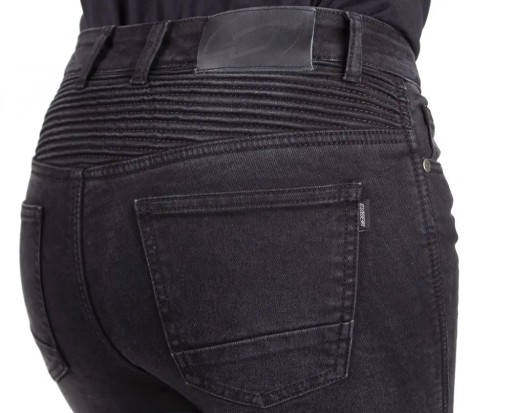 Jeansy motocyklowe damskie Ozone Agness II mają wysoki stan i krój slim fit. Elastyczne wstawki zapewniają swobodę ruchów podczas jazdy. Ozone Agness II wyposażono w certyfikowane ochraniacze levelu 2. Dużym ułatwieniem jest możliwość wyciągnięcia ich od zewnętrznej strony.