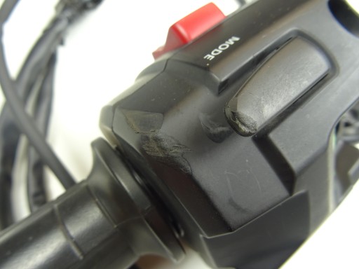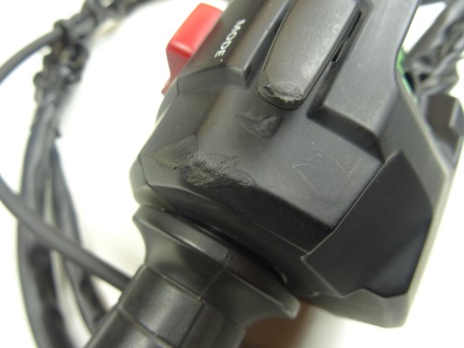 Przedmiotem aukcji jest prawy przełącznik z rolgazem (w stanie widocznym na zdjęciach) do Honda GL 1800 z 2019 roku.