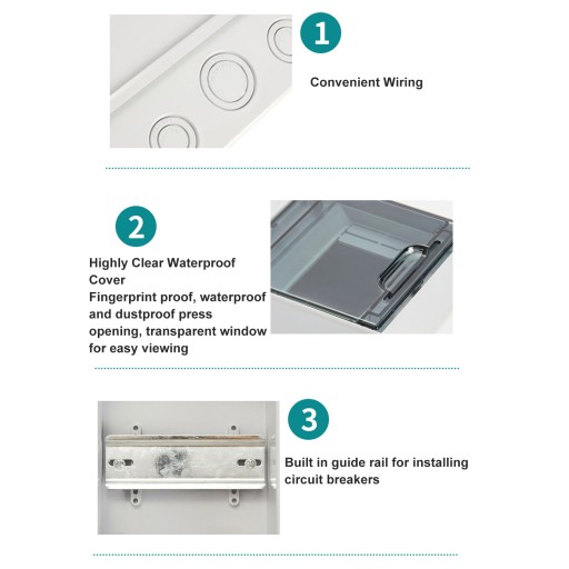 3. PROSTA INSTALACJA: Wyposażony wewnętrznie w szynę montażową, co ułatwia instalację wyłączników automatycznych i oszczędza więcej czasu na instalację.