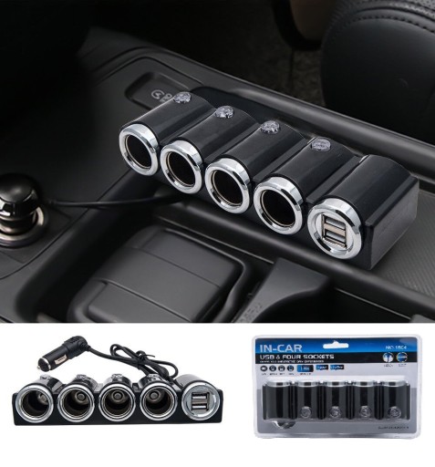 Rozdzielacz gniazda zapalniczki samochodowej z 1 na 4 plus gniazdo USB