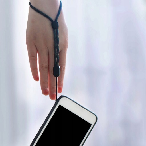 Smycz można nosić na nadgarstku, aby zapobiec przypadkowemu utraty lub uszkodzeniu telefonu.