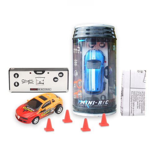 •With drink can shape box, perfect as a gift •With a 2.4G 4-direction remote controller •The mini car is super light and has high speed, easy to play •Includes 4 road blocks to increase fun •The car is powered by built-in rechargeable battery Specifications: •Product size: 8*4*3cm •Charging time: about 60 minutes •Use time: about 15 minutes •Car power supply: built-in rechargeable battery Package included: •1 x Remote Controller •1 x Racing Car •4 x Road Blocks •1 x Drink Can Box •1 x English and Chinese Manual