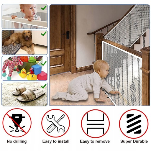 1. [poręcz poręczy] siatka asekuracyjna dziecka może zapobiec przechodzeniu dzieci między poręczami. Popraw bezpieczeństwo swojego dziecka bawiącego się balustradą.
