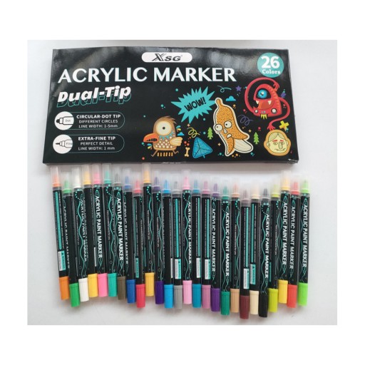 Акриловые фломастеры-маркеры, 26 шт, двусторонние, водостойкие