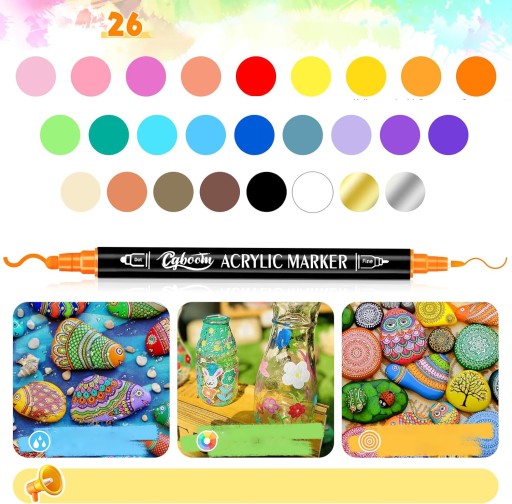 💥 - Dzięki 26 żywym kolorom, każdy akrylowy długopis ma okrągłą końcówkę 5 mm i cienką końcówkę 1 mm. Cienka końcówka nadaje się do konturów i cienkich linii. Okrągła końcówka idealnie nadaje się do malowania dużych powierzchni i detali.