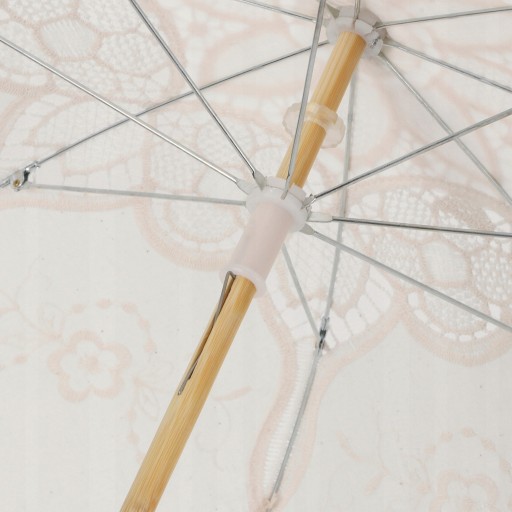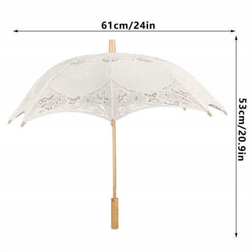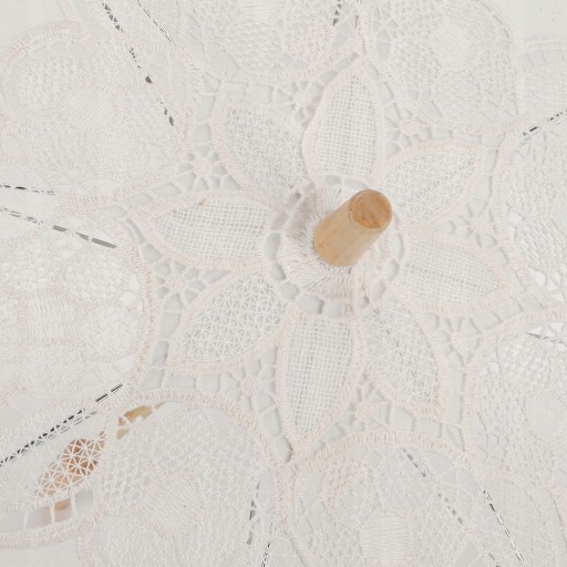 2. Powierzchnia parasola wykonana jest z wysokiej jakości koronki, a uchwyt wykonana jest z eukaliptusa.