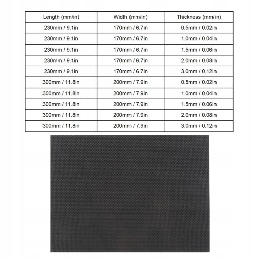 Rozmiar produktu: ok. 230x170x0,5mm, 230x170x1,0mm, 230x170x1,5mm, 230x170x2,0mm, 230x170x3,0mm, 200x300x0,5mm, 200x300x1,0mm, 200x300x1,5mm, 200x300x2 .0mm, 200x300x3.0mm (opcjonalnie)