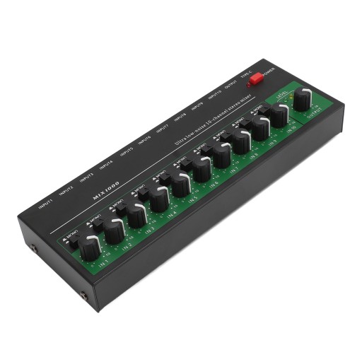 10-kanałowy mikser dźwięku Niezależne pokrętło regulacji głośności Profesjonalny wielokanałowy procesor dźwięku Niskoszumowy stereofoniczny mikser mono