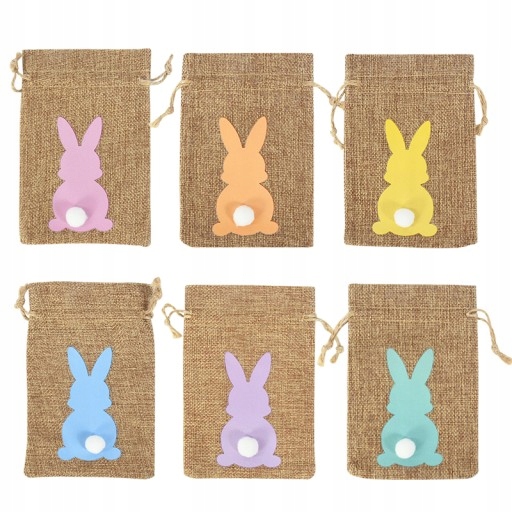 TORBA PREZENTOWA NA PREZENT JUTOWA WIELKANOC ZAJĄC 10x15CM 24SZT