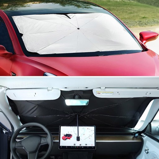 Mata składa się z 10 stalowych żeber, które składają i rozkładają się jak parasol. Złożona nie zajmuje dużo miejsca w samochodzie. Rozłożona uchroni Twoje auto przed nadmiernym nagrzewaniem się w środku oraz ochroni deskę rozdzielczą i kokpit przed działaniem słońca.