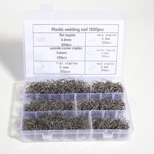 Zestaw 1800szt. zszywek do wtapiania w tworzywa sztuczne przed spawaniem plastiku lub klejeniem.