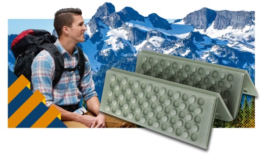 Dzięki większej grubości mata skutecznie izoluje od zimnego i wilgotnego podłoża, zapewniając ciepło nawet w trudnych warunkach pogodowych.