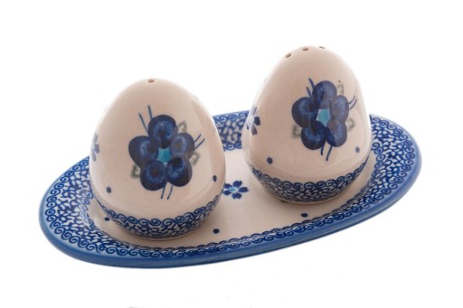 Solniczka i pieprzniczka z talerzykiem Bolesławiec (10890)