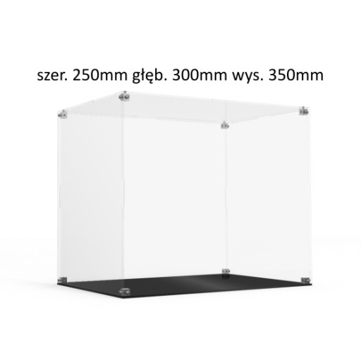 Wymiary wewnętrzne gabloty: szerokość 250mm; głębokość 300mm; wysokość 350mm