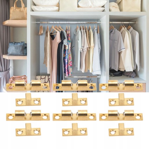 6 zestawów Zatrzask do drzwi szafki Mosiężny zatrzask do drzwi szafy Zatrzask kulowy ze złotą śrubą do większości szafek