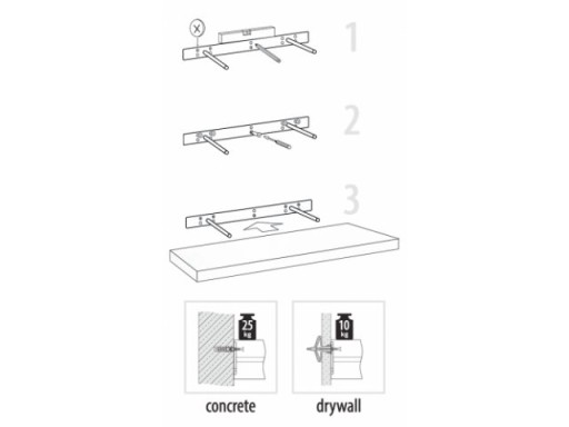 Komplet składa się z półki, wspornika i zestawu wkrętów i kołków do mocowania do ściany.