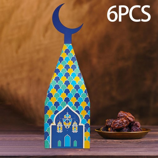 6 szt. Pudełko cukierków Eid Ramadan Islamski muzułmanin dla muzułmańskich ozdób na imprezę Ramadan Ciemnoniebieski