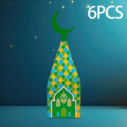 6 szt. Pudełko cukierków Eid Ramadan Islamski muzułmanin dla muzułmańskich ozdób na imprezę Ramadan Zielony