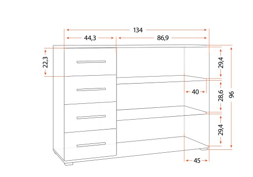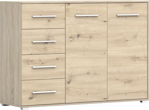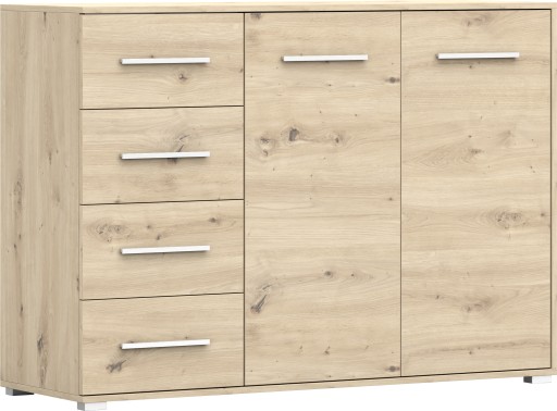Komoda Frida 01 zaskoczy Cię najwyższą funkcjonalnością, połączenie szuflad i półek ukrytych w dwóch szafkach świetnie sprawdzi się w salonie, sypialni, a także w każdym innym pomieszczeniu, gdzie może spełniać funkcje przechowywania.