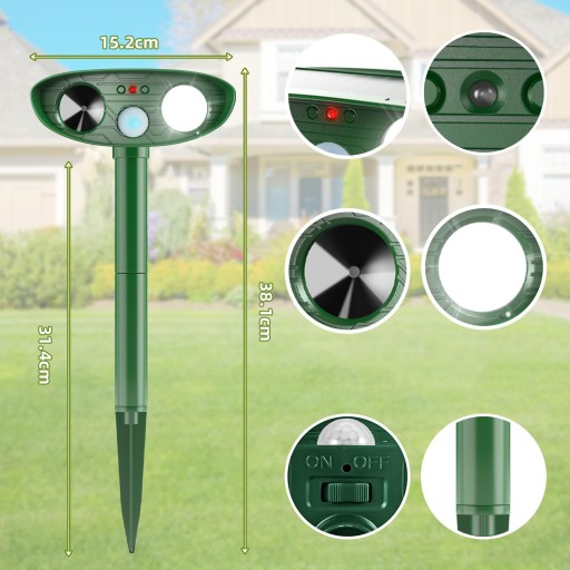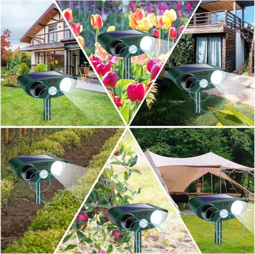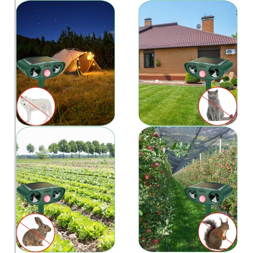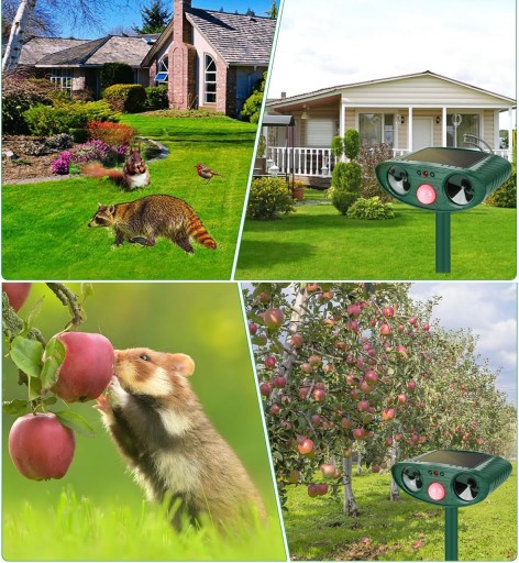 żadne składniki chemiczne nie zagrażają zdrowiu człowieka. Wygeneruje tylko ultradźwięki, aby je wypędzić. Nie zaszkodzi twoim zwierzętom, czemu towarzyszy dźwięk alarmu, który może skutecznie odstraszyć dzikie zwierzęta, takie jak ptaki, króliki, lisy, wiewiórki.