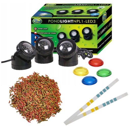 Reflektor LED do oczka wodnego - podwodne oświetlenie . Bezpieczne napięcie + czujnik zmierzchu + 5 kolorów podświetlenia + energooszczędność 3x 1,6W. W porównaniu ze zwykłymi halogenami, reflektor LED prawie nie zużywa prądu (pobór mocy tylko 3x 1.6W).