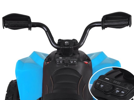 Na desce rozdzielczej znajduje się przełącznik do jazdy przód, stop, tył, oraz włącznik/wyłącznik oświetlenia, które można wyłączyć/włączyć w każdej chwili. W quadzie znajduje się moduł muzyczny z wgranymi melodiami, wejściem na USB i MP3 a także radio FM.
