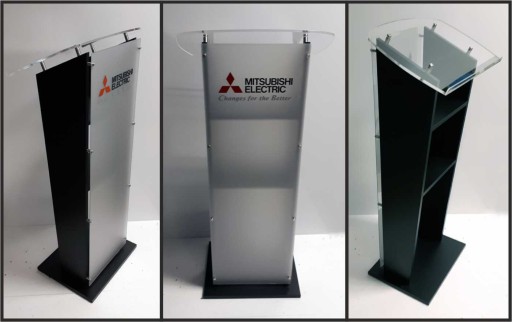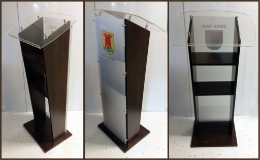 Mównica wykonana z płyty meblowej. Plexi na blat grubości 6mm.