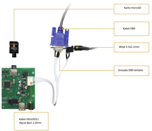 - Interfejs kart SD: FAT32, prędkość pobierania danych: 4Mb/s