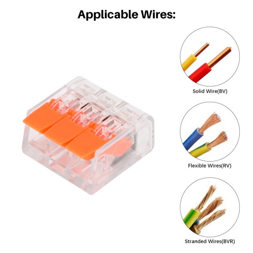 ZŁĄCZKI WAGO 221 SŁUŻĄ DO ŁĄCZENIA PRZEWODÓW TYPU DRUT LUB LINKA. DŹWIGNIE POZWALAJĄ W ŁATWY SPOSÓB WPIĄĆ PRZEWODY W ZACISKI. TRANSPARENTNA OBUDOWA POZWALA ZWERYFIKOWAĆ POPRAWNOŚĆ POŁĄCZENIA.