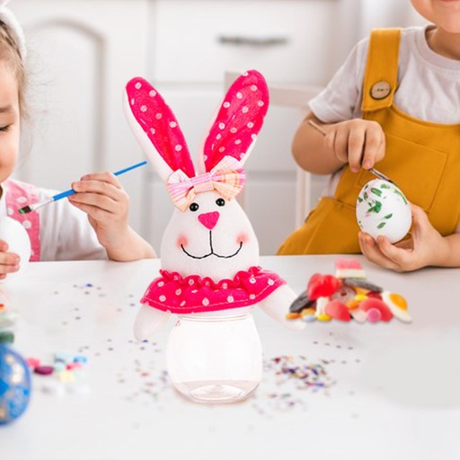 [Unikalny projekt]: Delikatny wielkanocny słoik na ciasteczka z pokrywką z pluszowej lalki z kreskówek i unikalne elementy wielkanocne dodają silnej festiwalowej atmosfery.