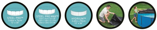 - Pasuje do basenów Steel Pro MAX o średnicy 366cm, Steel Pro o średnicy 366cm oraz Hydrium Splashhero 360x90cm