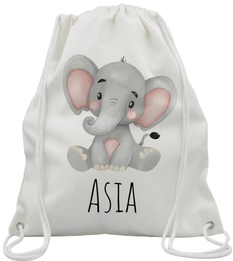 Klasyczny, uniwersalny worek, plecak sportowy w kolorze białym/ecru z białymi sznurkami i dedykowanym Twoim nadrukiem.