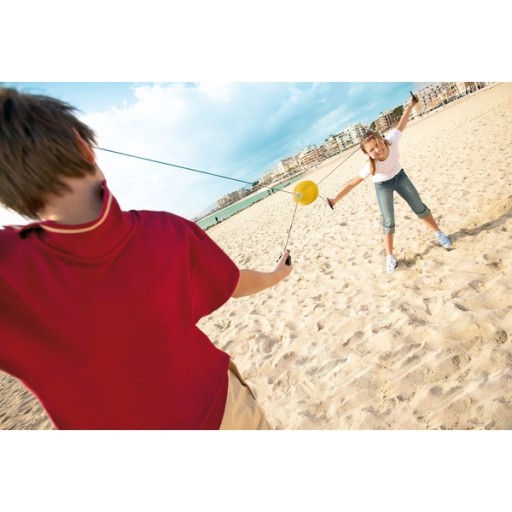 Latająca Bila to rewelacyjna gra zręcznościowa, która polega na przeciąganiu bili pomiędzy graczami, tak aby przeciwnik nie zdążył w odpowiednim momencie odbić bili. Latająca Bila to klasyczna zabawka dla dwóch osób wykonana z miękkiego tworzywa, sznurka i plastikowych uchwytów. Jest to idealny zestaw do zabawy na świeżym powietrzu z rodziną i przyjaciółmi. Jumbo ball sprawdzi się podczas zabaw na wakacjach czy weekendowych wyjazdach.