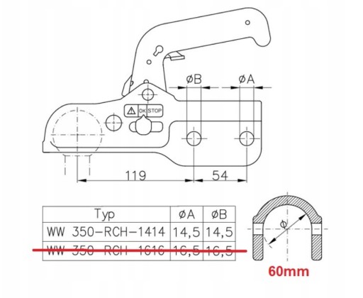 Zaczep Kulowy Winterhoff: WW 350-RCH-1414
