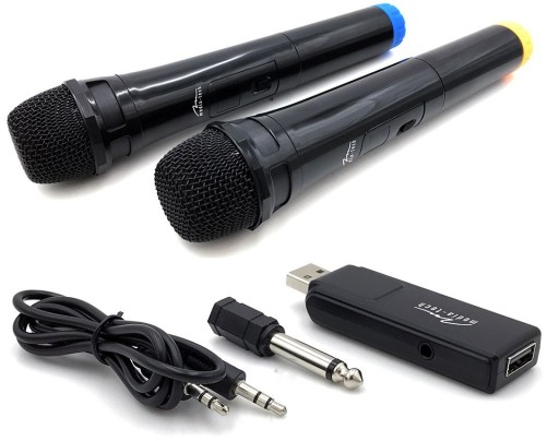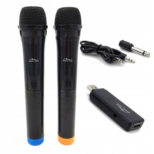 ⭐ ACCENT PRO MT395 to zestaw dwóch uniwersalnych mikrofonów bezprzewodowych Karaoke. Doskonale nadają się na różnego rodzaju imprezy, grille, domówki itp. Największą zaletą mikrofonów jest możliwość podłączenia do praktycznie każdego głośnika oraz systemu audio, obsługującego funkcję Karaoke. Wystarczy podłączyć odbiornik RF do portu USB głośnika, a następnie włączyć mikrofony - to proste! Dynamiczne mikrofony MT395 uwydatniają śpiew i niwelują niechciane głosy otoczenia oraz szumy. Zasięg działania mikrofonu to aż 20 metrów (od odbiornika RF). Mikrofony mają estetyczny, sceniczny wygląd. Odróżnia je od siebie kolorowa stopka. ACCENT PRO to gadżet dedykowany dla każdej grupy wiekowej - bo śpiewać każdy może! Właściwości Zestaw dwóch mikrofonów bezprzewodowych Sceniczny wygląd Przejściówka jack 3,5mm (żeński) na 6,5mm (męski) Efektywny zasięg: do 20 metrów Częstotliwość transmisji: 261,6/268,8MHz Zasilanie mikrofonu: 2x baterie alkaliczne AA (nie znajdują się w zestawie) Zasilanie odbiornika RF: USB 5V Odbiornik wyposażony w przelot gniazda USB umożliwiający podłączenie USB drive do głośnika Waga mikrofonu: 136g (bez baterii) Wymiary mikrofonu: 240x48mm ⭐