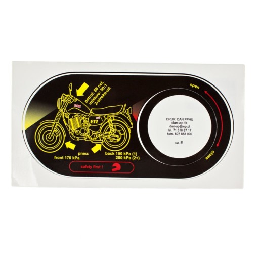Naklejka naklejana wokół wlewu paliwa do motocykli MZ ETZ251.