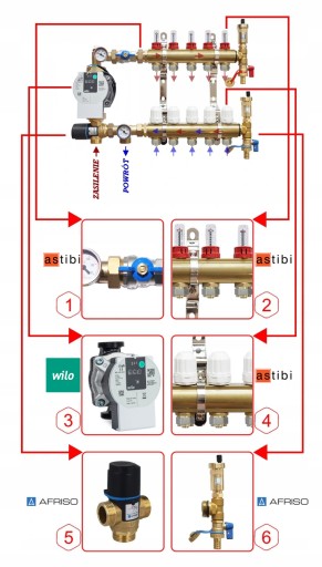 ROZDZIELACZ 4 OBWODY DO OGRZEWANIA PODŁOGOWEGO Z ZESTAWEM MIESZAJĄCYM Z ENERGOOSZCZĘDNĄ POMPĄ WILO