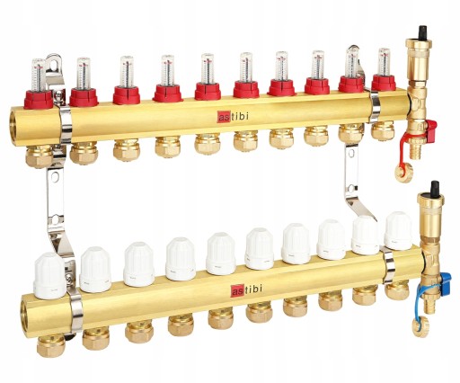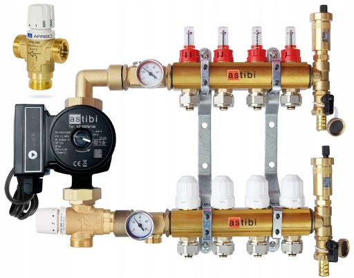 ROZDZIELACZ 10 OBWODÓW DO OGRZEWANIA PODŁOGOWEGO Z ZESTAWEM MIESZAJĄCYM Z ENERGOOSZCZĘDNĄ POMPĄ ASTIBI