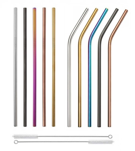W zestawie znajdują się proste oraz zakrzywione słomki, zestaw spełni oczekiwania każdego. Korzystanie z nich nie pozostawia metalicznego smaku, a użytkowanie ich jest całkowicie bezpieczne; sprawdzą się do ciepłych jak i zimnych napoi.