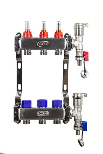 Напольный распределитель INOX стальной, 3-х контурный Goshe 0331.211