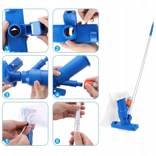 ➤Została zaprojektowana z 5-sekcyjnymi kijkami, jej dno wyposażone jest w 3 szczotki i 2 kółka. Unikalny design, łatwy do czyszczenia i przenoszenia. Idealny do czyszczenia basenów, spa, jacuzzi, stawów i fontann itp. Oszczędza wodę, nie ma potrzeby opróżniania basenu w celu czyszczenia.