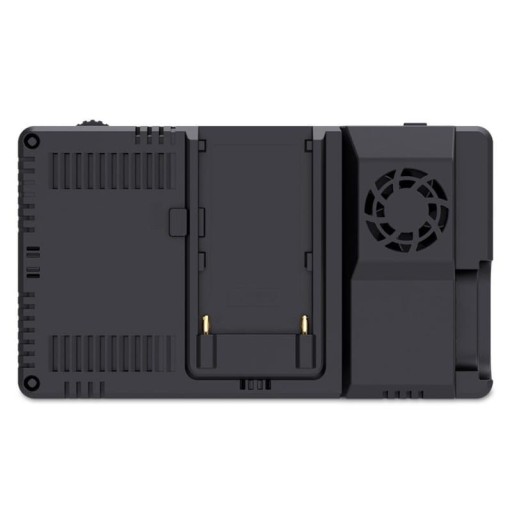 Szklany panel dotykowy ułatwia szybką obsługę za pomocą prostych gestów. Sterowanie dotykowe może zostać wyłączone za pomocą przycisku funkcyjnego na górze obudowy, odpowiadającego także za uruchamianie monitora. Układ przycisków na obudowie został maksymalnie uproszczony - poza wspomnianym przyciskiem funkcyjnym na górnej krawędzi znajduje się pokrętło, za pomocą którego można poruszać się po menu. Jego dłuższe naciśnięcie otwiera dostęp do kolejnych funkcji. Z lewej strony umieszczono porty HDMI - wejściowy i wyjściowy, dzięki którym monitor pozwala na jednoczesne wyświetlanie rejestrowanego obrazu oraz przekazywanie go dalej, do zewnętrznego ekranu czy projektora. Na dolnej krawędzi znajdują się z kolei gniazdo słuchawkowe stereo mini jack 3,5 mm, wejście DC 12 V oraz wyjście DC 8,4 V, służące do podłączenia akumulatorów typu Dummy Battery. W obudowie przewidziano także port na karty SD oraz dwa otwory montażowe w standardzie 1/4 cala - jeden na dolnej krawędzi i drugi, umieszczony z prawej strony. Dzięki temu monitor może być z łatwością zamontowany w rozmaitych uchwytach, klatkach operatorskich oraz rigach lub też korzystać z dołączonego do zestawu dedykowanego ramienia.