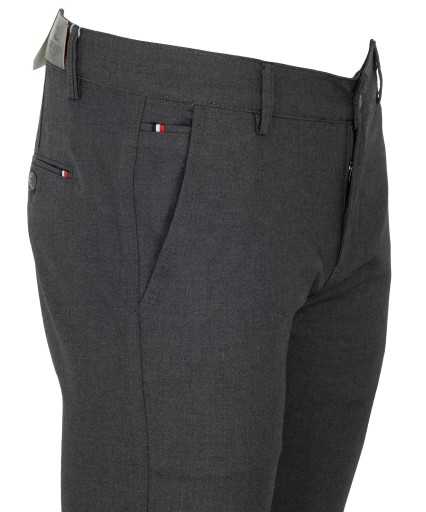 Przedmiotem naszej oferty są spodnie męskie – materiałowe, w kolorze ciemno-szarym