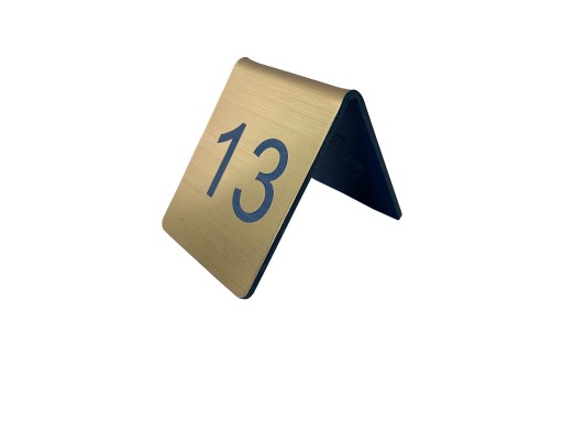 Przedmiot dedykowany pubom i restauracjom; wycinany laserowo z laminatu grawerskiego grubości 1,6 mm i gięty do odpowiedniego kształtu w wysokiej temperaturze.