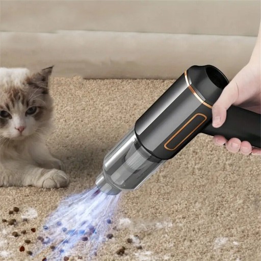 Ten ręczny odkurzacz jest bezprzewodowy i łatwy w przechowywaniu, co zapewnia większą wygodę podczas sprzątania. Przenośny odkurzacz do wnętrza samochodu, czyści kurz, okruszki, sierść zwierząt z dywanów, kuchni, salonu i biur z wyjątkową wydajnością.